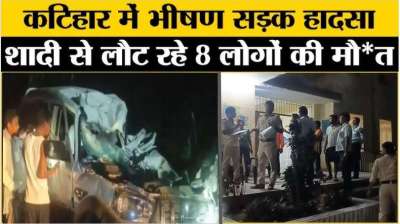 बिहार के कटिहार में बड़ा हादसा हो गया. बरात में जा रही स्कॉर्पियो गाड़ी ट्रैक्टर से टकरा गई. हादसे में आठ बरातियों की मौत हो गई. दो लोग गंभीर हालत...
