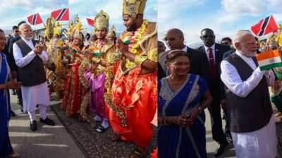 महाकुंभ और सरयू का जल लेकर पहुंचे मोदी, भावनात्मक हुआ त्रिनिदाद का मंच