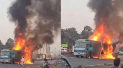 पुणे-बेंगलुरु हाईवे पर कंटेनर और बस आपस में टकराए, 8 की जिंदा जलकर मौत