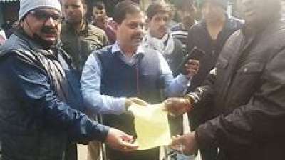नगर निगम पर प्रदर्शन, बैरिकेडिंग के बीच कार्यकर्ताओं ने किया हनुमान चालीसा का पाठ