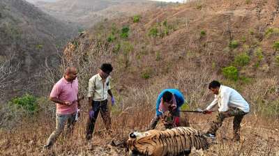 शाहपुर वन परिक्षेत्र के चौंडी बीट में एक गर्भवती बाघिन का शव मिलने से मचा हड़कंप