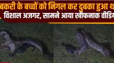 विशाल अजगर का अजीबोगरीब नजारा, बकरी के दो बच्चों को निगला और उगल दिया, कैमरे में कैद हुई पूरी घटना
