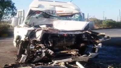 इंदौर: अहमदाबाद से महाकुंभ जा रही श्रद्धालुओं से भरी ट्रैवलर बस कंटेनर से टकराई, हादसे में 1 व्यक्ति की मौत