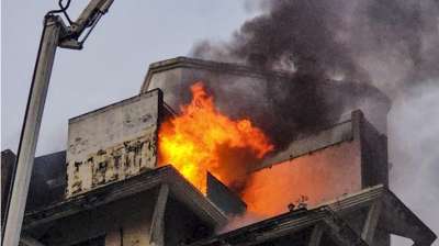 चार मंजिला इमारत में लगी आग से मचा हड़कंप, राहत कार्य जारी