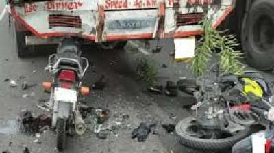 तेज रफ्तार ट्रक से टकराई बाइक, तीन युवकों की गई जान