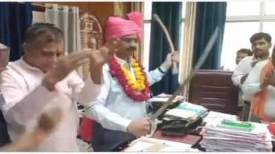विधायक से तकरार के बाद कलेक्टर का तलवार लहराना बना चर्चा का विषय