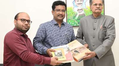 इतिहासकार रमेन्द्रनाथ मिश्र ने प्रमुख सचिव सोनमणि बोरा को भेंट की दुर्लभ किताबें