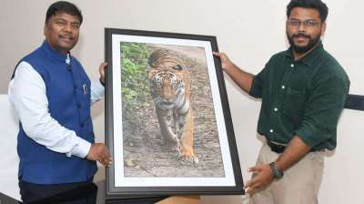 वन मंत्री कश्यप से शोधार्थी कुशाग्र मेश्राम ने की मुलाकात
