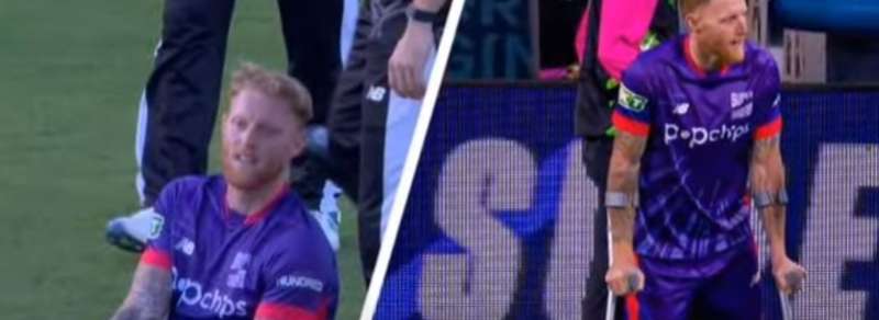 33 वर्षीय स्टोक्स ने ओल्ड ट्रैफर्ड में मैनचेस्टर ओरिजिनल्स के खिलाफ सुपरचार्जर्स के 153 रनों के लक्ष्य का पीछा करते समय विकेटों के बीच दौड़ते समय अपनी मांसपेशियों में खिंचाव महसूस किया। नॉन-स्ट्राइकर छोर से तेजी से एक रन पूरा करते समय स्टोक्स ने बाईं हैमस्ट्रिंग को पकड़ कर मैदान पर पर लेट गए। स्टोक्स दो रन पर रिटायर्ड हर्ट हो गए और उनकी जगह इंग्लैंड के साथी हैरी ब्रूक मैदान पर आए। मैच के बाद भी वह बैसाखी के सहारे चल रहे थे और उसी हाल में फैंस को ऑटोग्राफ भी दिए।