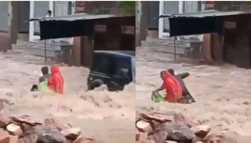 तीन फीट पानी में बह रही थी पुलिया, बाइक सहित परिवार फंसा, लोगों ने किया रेस्क्यू