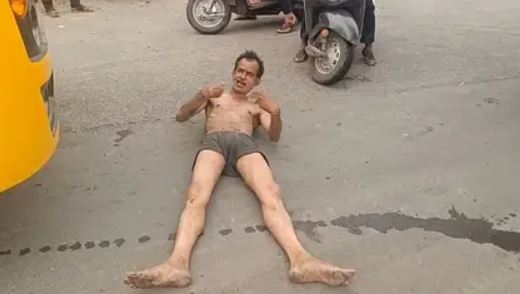 इस पूरे घटनाक्रम का वीडियो तेजी से वायरल हो रहा है, जिसमें विजय सिंह बीच सड़क पर गाड़ियों के आगे अर्धनग्न दिखाई दे रहा है। वाहन चालक उसे हटाने के लिए हॉर्न बजा रहे हैं, लेकिन फिर भी वह हटने को तैयार नहीं है।