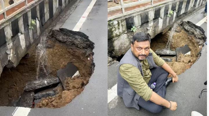 भारी मानसून में खोली सड़क पर गुणवत्ता व निगरानी की पोल,बोर्ड ऑफिस चौराहा में लगभग 10 फीट गड्ढा