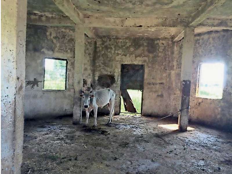 भैंसों के तबेले में बदला स्कूल भवन, बच्चों की पढ़ाई सड़क और मंदिर पर पहुंची
