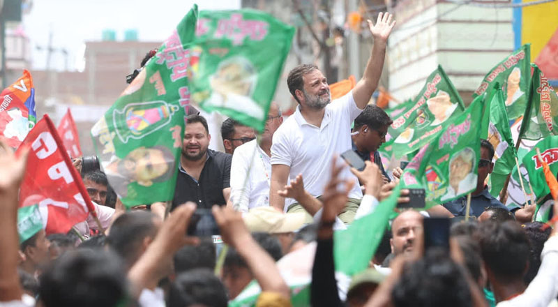 मुंगेर। लोकसभा में विपक्ष के नेता राहुल गांधी की मतदाता अधिकार यात्रा आज छठे दिन बिहार के जमालपुर और मुंगेर पहुंची। इस यात्रा का उद्देश्य देशभर में मतदाता सूची में कथित धांधली और मतदाता अधिकारों के उल्लंघन के खिलाफ जन- जागरूकता फैलाना है। राहुल गांधी के साथ यात्रा में राष्ट्रीय जनता दल (राजद) नेता तेजस्वी प्रसाद यादव भी शामिल रहे।
