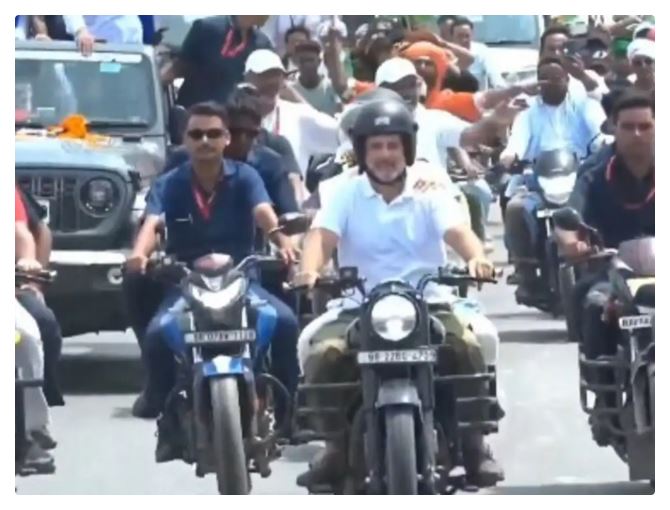 स्टाइलिश अंदाज़ में राहुल गांधी, बहन प्रियंका संग निकले वोटर अधिकार यात्रा पर