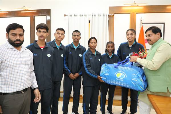 मुख्यमंत्री डॉ. यादव से मिले जर्मनी जाने वाले ग्राम विचारपुर के 5 फुटबॉल खिलाड़ी