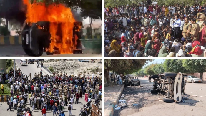 श्रमिकों का उग्र प्रदर्शन, नोएडा में हिंसा—5 वाहन जलाए, दिल्ली पुलिस हाई अलर्ट पर