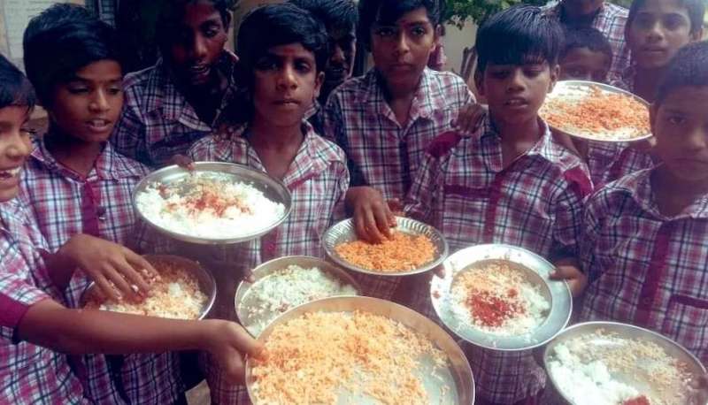 बच्चों को मिड-डे मील में परोसा गया, चावल और मिर्च पाउडर