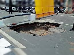 सड़क धंसी, निगम बोला एयरटेल की लापरवाही जिम्मेदार