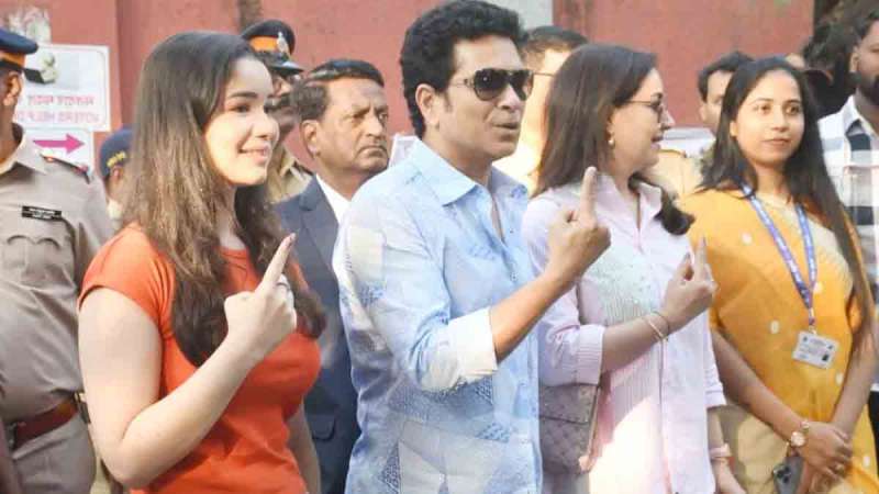 दरअसल, महान क्रिकेटर सचिन तेंदुलकर मुंबई के बांद्रा वेस्ट सेंटर पर वोट डालने पहुंचे। इस दौरान उनके साथ पत्नी अंजलि और बेटी सारा तेंदुलकर भी नजर आईं। सचिन को देखकर फैंस उनसे मिलने के लिए बेताब नजर आए।