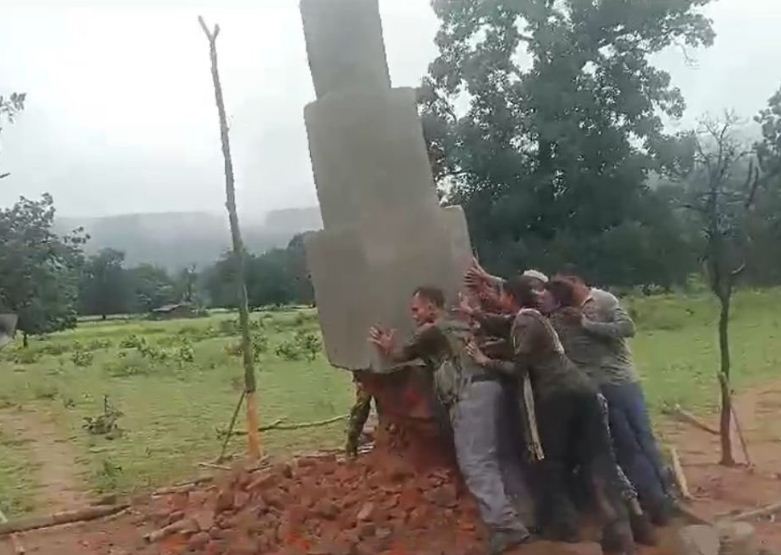 जवानों ने नक्सलियों के शहीद स्मृति स्मारक को ध्वस्त किया
