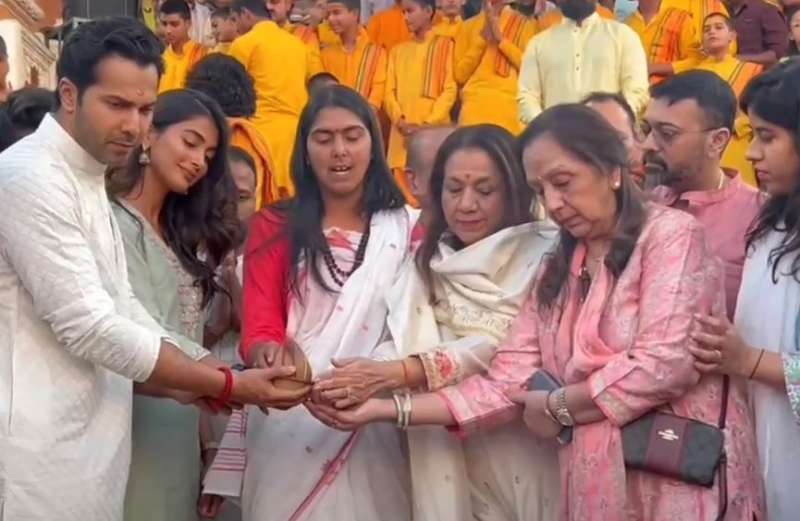 बॉलीवुड स्टार वरुण धवन और पूजा हेगड़े शुक्रवार को अपनी नई फिल्म की शूटिंग के लिए ऋषिकेश पहुंचे। पवित्र स्थान पर शूटिंग शुरू करने से पहले वरुण और पूजा को परमार्थ निकेतन आश्रम में गंगा आरती में भाग लेते हुए देखा गया। वे दोनों खुशी-खुशी भक्तिमय माहौल में डूबे रहे। वरुण धवन ने अपने इंस्टाग्राम हैंडल पर ऋषिकेश में अपने पहले शेड्यूल की कई तस्वीरें शेयर की हैं। तस्वीरें शेयर करते हुए उन्होंने लिखा, 'ऋषिकेश में हमारे शेड्यूल की शानदार शुरुआत धन्य।'