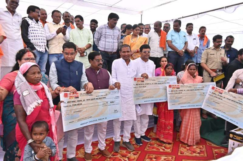 मंत्री वर्मा ने कृषि विभाग की ओर से 15 हितग्राहियों को मसूर मिनीकिट वितरण, 9 हितग्राहियों को स्प्रेयर पंप वितरण, पशु चिकित्सा विभाग की ओर से 8 हितग्राहियों को चेक वितरण, चिकित्सा एवं स्वास्थ्य विभाग की ओर से 10 हितग्राहियों को पोषण कीट का वितरण, श्रम विभाग की ओर से 4 हितग्राहियों को राशि वितरित किया।