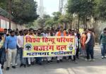 नगर निगम पर प्रदर्शन, बैरिकेडिंग के बीच कार्यकर्ताओं ने किया हनुमान चालीसा का पाठ -